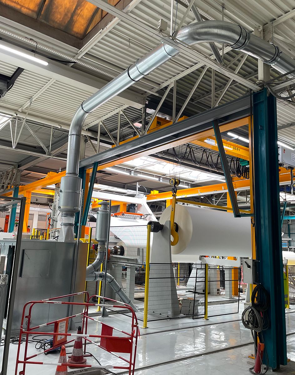 Ayrıca sistem, 300 mm çapında 60 metre kanal hattı üzerinden mevcut siklona bağlanmış ve trim tahliyesi mevcut geri dönüşüm hattına (siklon ve pulper) sorunsuz biçimde entegre edilmiştir.